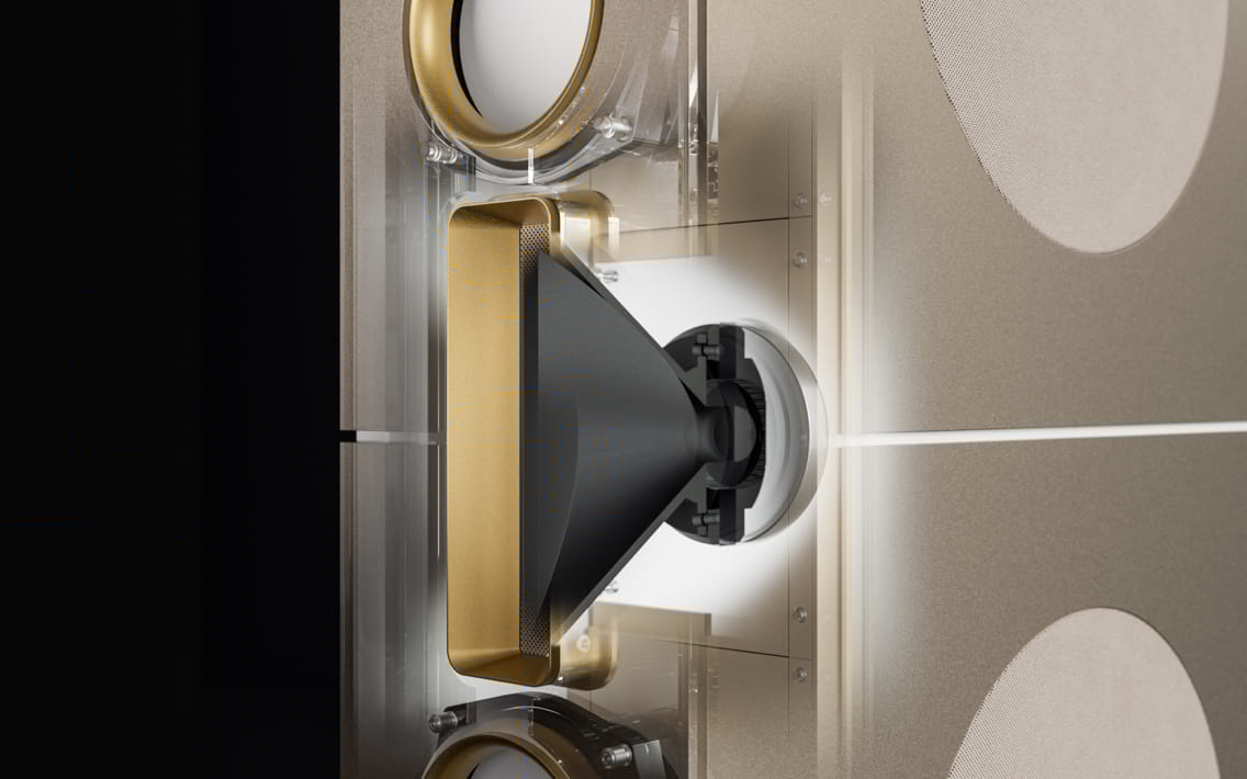 Herzstück der BMLine 35 ist der Fraunhofer-Zylinderwellenstrahler mit einem ein Zoll messenden Hochtöner, der die Frequenzen ab 1000Hz mit höchstmöglicher Transparenz, Dynamik und Feinauflösung reproduziert.