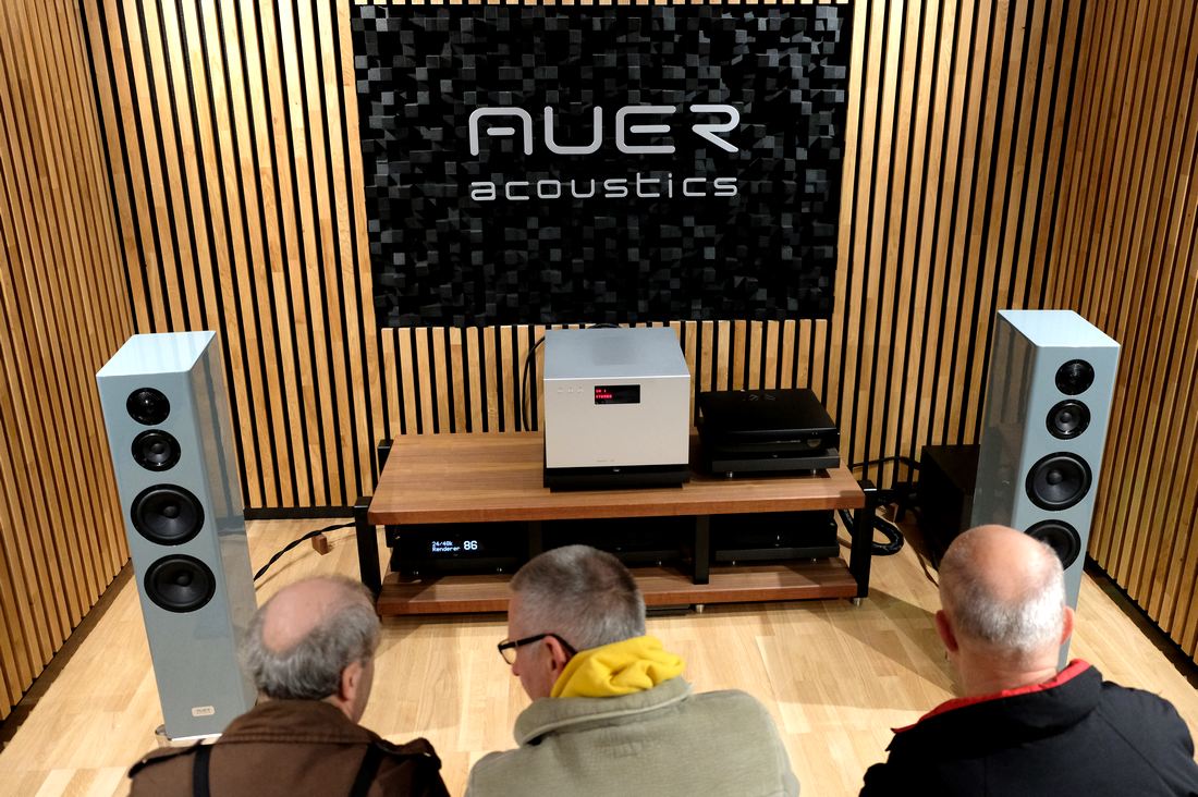 Wie immer auf den HiFi-Messen, so war Auer Acoustics auch auf den Mitteldeutsche HiFi-Tage mit großem Besteck vertreten. Nagelneu hier in Leipzig der noch unbepreiste High End Standlautsprecher Versura V2. Neu im Vertrieb nun auch HiFi-Racks aus eigener Entwicklung und Fertigung. Wer sich über die schalloptimierenden Wände wundert, so tritt Auer Acoustics auf allen Events auf. Insofern auch sehr trocken und neutral das hier Gehörte.