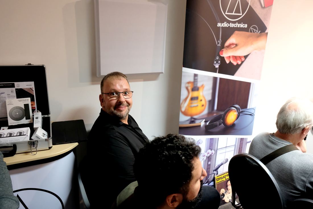 Auf den ersten Blick schien es in der Audio Welt Chemnitz um die Standlautsprecher Monitor Audio Gold 500 6G für 6.500 Euro sowie den Streaming-Verstärker Roksan Caspian 4G (Test des Amps) für 4.500 Euro zu gehen. Doch das war eine Fehleinschätzung, Hanno Kramer führte fünf Audio Technica MM- und MC Tonabnehmer verschiedener Preisklassen mit Schnellwechsel der Headshells am Audio Technica AT-LP8X für 1.000 Euro vor. Nicht, das der günstigste Tonabnehmer nun wirklich schlecht gewesen wäre, wie das Publikum befand, doch die Unterschiede waren bemerkenswert. Eine neue Personalie hier: Timo Schulz, bekannt von KEF, war in diesem Jahr für Audio Technica auf den MDHT 2025 unterwegs.