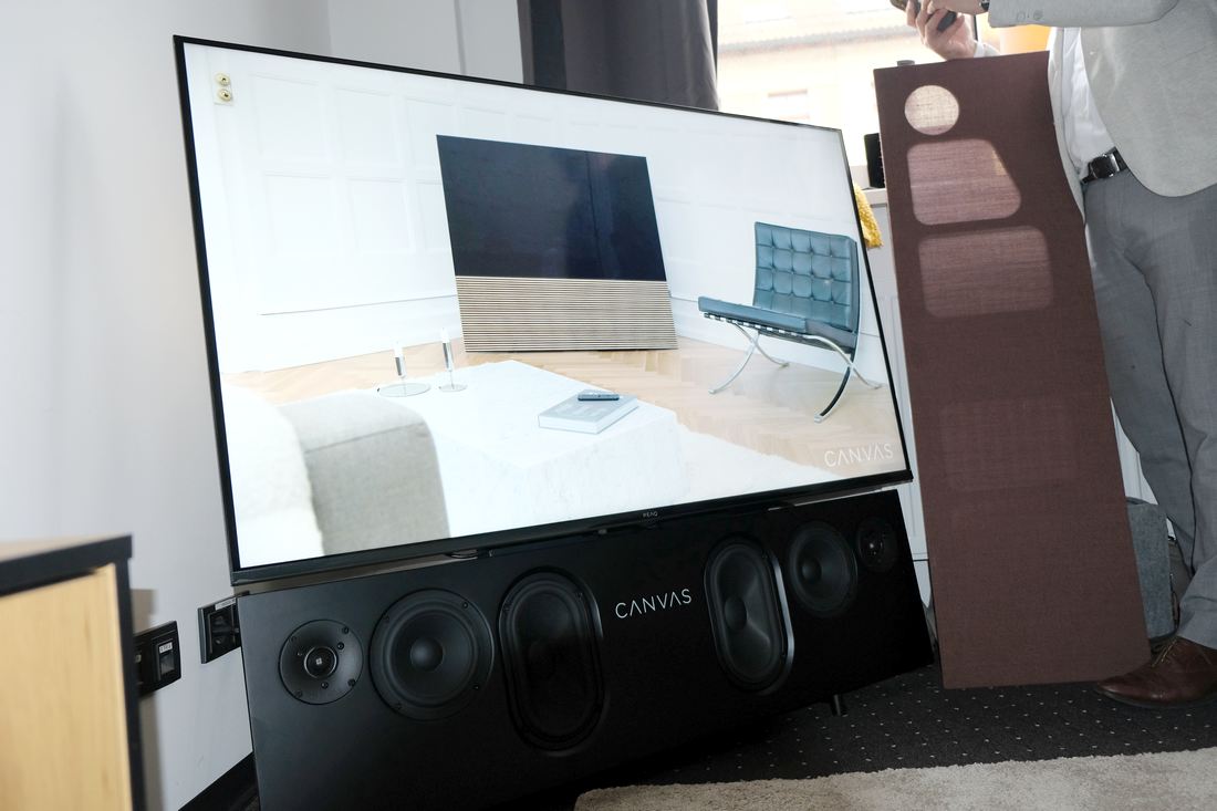 Zum Abschluss meines ersten Rundgangs und Messeberichts der Mitteldeutsche HiFi-Tage 2025 beim Leipziger Händler Zeitgeist HiFi eine Soundbar für Flachbild-TV von Canvas aus Dänemark. Eine interessante Lösung, bei welcher der Fernseher mit der Soundbar verschraubt wird. Die Preise für das exklusive Produkt beginnen bei rund 3.500 Euro, es gibt verschiedene Modelle für Fernseher von 55 bis 85 Zoll.
