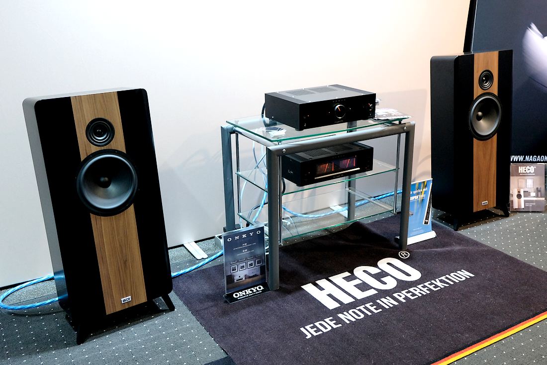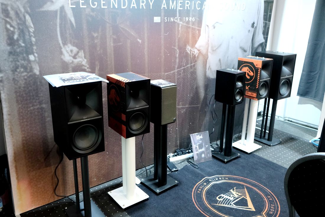 ONKYO, die legendäre HiFi-Marke meiner Jugend – den A-9911 Verstärker und das Tape Deck TA-2070 besaß auch ich mal – ist wieder zurück. Obenauf der Netzwerkvorverstärker ONKYO P-80 für 1.500 Euro mit Dirac Live Raumkorrektur, und unter ihm im HiFi-Rack der ONKYO M-80 Stereo-Endverstärker für 1.600 Euro mit seinen klassischen VU-Metern. Standlautsprecher hier die Heco Direkt Premium für 3.000 Euro das Paar, und die Strippen stammten von Supra Cables. Eine klasse räumliche Darbietung und ordentlich trockener Schub waren hier geboten. Wenn dann die aktiven Bluetooth-Lautsprecher von Klipsch vorgeführt wurden, die an der linken Wand standen, war es allerdings dermaßen laut, dass man die Darbietungen in den Nebenräumen nicht wirklich genießen konnte, das muss nun wirklich nicht sein…