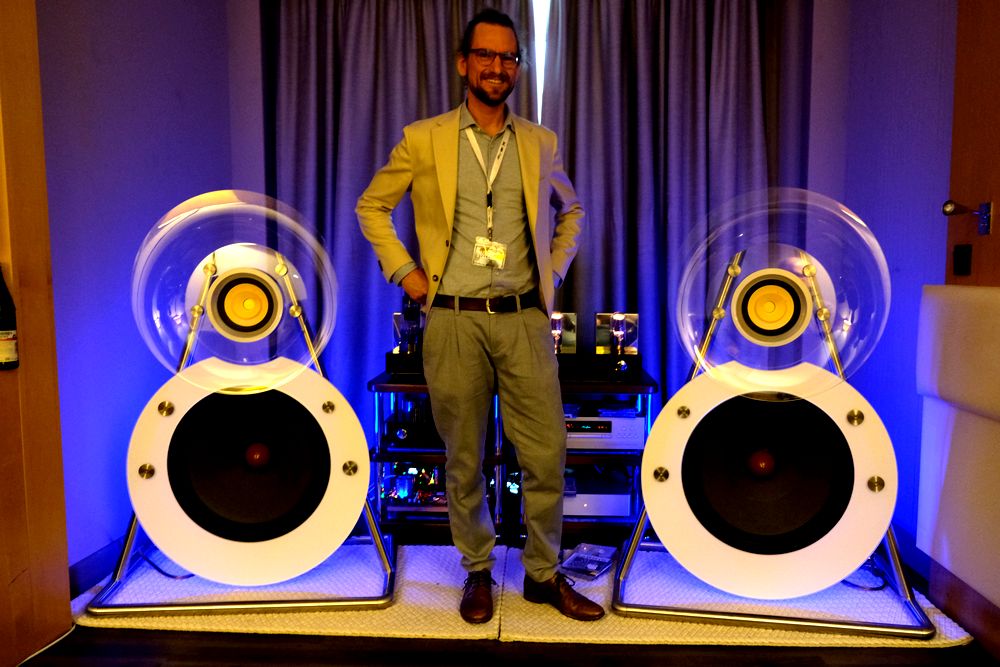 Von WB Manufacture stammten hier die exklusiven Röhrenverstärker, die erst auf Wunsch hergestellt werden, und bei denen der Kunde so noch Wünsche äußern kann. Der Star hier jedoch die Open Baffle Lautsprecher von Aeroglass, die um die 35.000 Euro kosten sollen. In Plexiglasplatten sind die Treiber montiert, und somit erscheinen die Lautsprecher gegenüber ihrem Klang gar nicht so riesig.