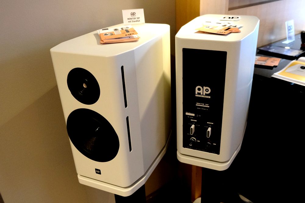 So langsam kommen sie rum, und werden nach und nach bekannter, die Lautsprecher der AP-Elektroakustik aus Neu-Um. In der Vorführung die teilaktiven Standlautsprecher (Test) um 18.800 Euro. Weiterhin dabei der DAC Preamlifier SPL Director mk2 sowie die Stereoendstufe SPL Performer s1200. Rein analog zugespielt wurde hier per Plattenspieler Orbiter mit Lyra Delos für 18.000 Euro von der HiFi-Zeile in Worpswede, dessen Signale vom Phono-Verstärker SPL Phonos für 2.000 Euro verarbeitet wurden. Nicht zu Hören, nur zu sehen die geschlossenen passiven Drei-Wege Regallautsprecher MONITOR 30P (Test) mit Downfire Tieftöner für knapp 10.000 Euro.