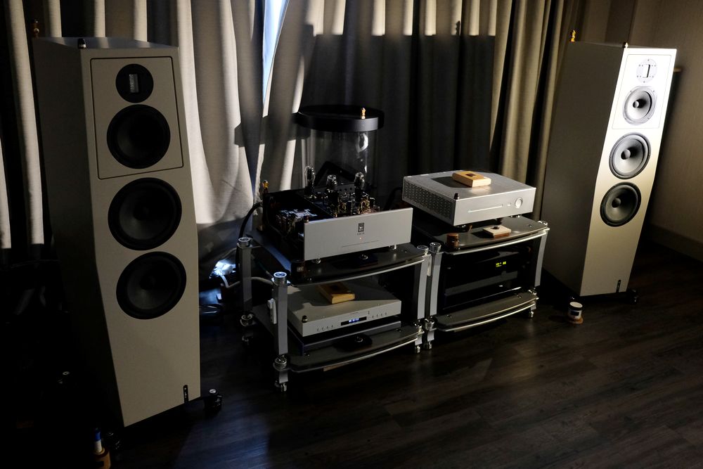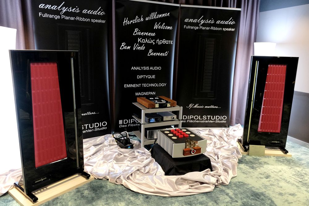 Mmh, lecker, die Elektrostaten Analysis Audio Epsilon GSE für knappe 14.000 Euro. Diese konnten nicht nur fein und räumlich, sondern auch untenrum erstaunlich gut. Quelle ein CD-Player Pathos Digit, Kraft und Saft vom High End Vollverstärker Pathos LOGOS für 5.400 Euro. Also noch durchaus erschwinglich, vor allem für das Gebotene.