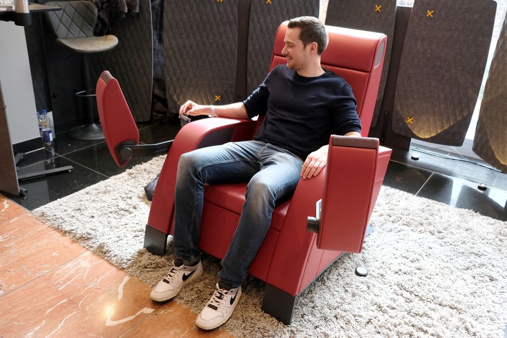 Bevor es dann hoch in den ersten Stock ging, strategisch günstig der 15.000 Euro teure Hörsessel Sonic Throne von Markus Schönrock und Norbert Reinhardt. Mittendrin statt nur dabei ist hier die Hördevise, einem überdimensionalen Kopfhörer nicht unähnlich. Doch im Unterschied zu dem gibt es noch einen Subwoofer unter dem Hintern.