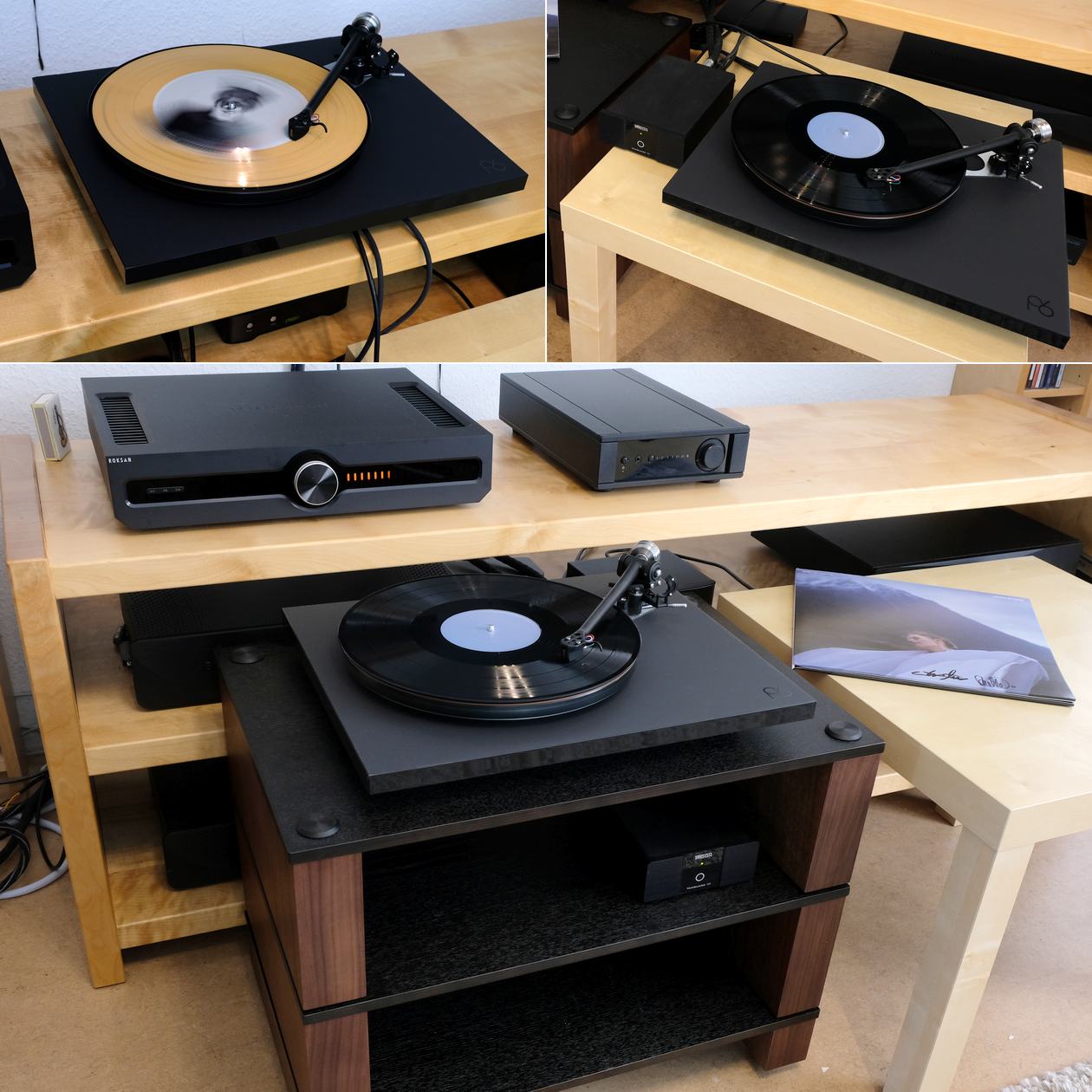 So, wie mag das HiFi-Rack Blok STAX 2G wohl klingen? Dazu einfach mal mit dem Fingerknöchel draufgeklopft, ein kurzes trockenes „Tok“ ertönt, und verstummt sehr schnell. Jetzt wisst ihr es also! Okay, ich weiß schon, ihr wollt etwas über die klanglichen Auswirkungen des HiFi-Regals erfahren. Um diese herauszufinden, nehme ich das wohl empfindlichste HiFi-Gerät, das es gibt. Ergo stelle ich den Rega P6 mitsamt des Trigon Vanguard III wechselweise auf das IKEA-Lack Tischchen, auf das Blok STAX 2G und das eigene HiFi-Rack.