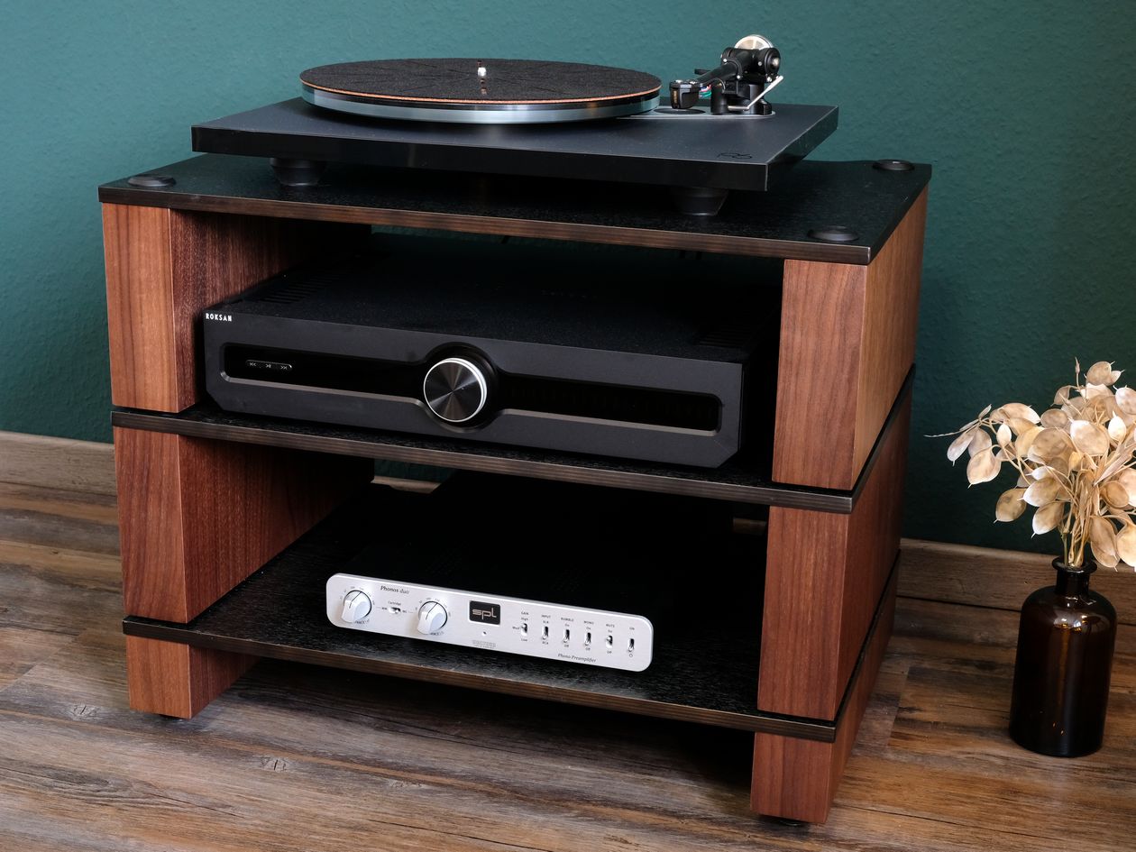 Im Laufe der Zeit hat Mann sich eine schöne und edle HiFi-Anlage zusammengestellt, und bei den analogen HiFi-Fans haben sich auch noch so einige LPs angesammelt. Doch von der Aufstellung her werden die Komponenten wie auch Langspielplatten des Öfteren leider jedoch etwas stiefmütterlich behandelt und stehen auf einer alten Kommode oder werden, noch schlimmer, mit in den bereits vorhandenen TV-Schrank gequetscht. Da leiden dann nicht nur die Augen, auch die Ohren sind verstimmt, wie soll man da denn seine Musik wirklich genießen können? Abhilfe versprechen „HiFi-Racks“, die in Möbelhäusern oder Baumärkten zuhauf zu sehr günstigen Preisen erhältlich sind, doch wenn man sich deren Design und Qualität so anschaut, läuft man meistens doch nur kopfschüttelnd davon…