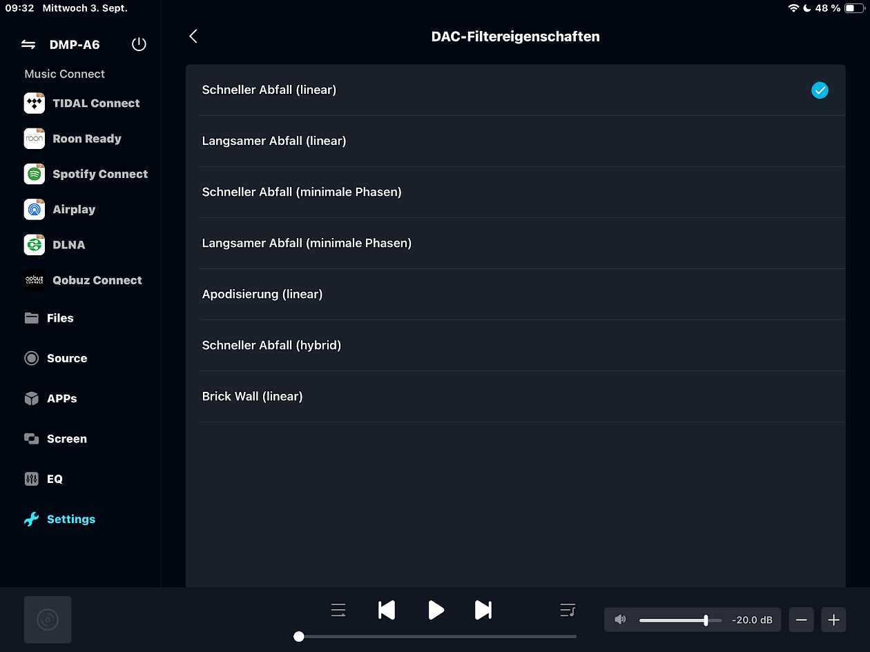 - Unterstützte Formate: DSD512, PCM 768 KHz 32 Bit, MQA
